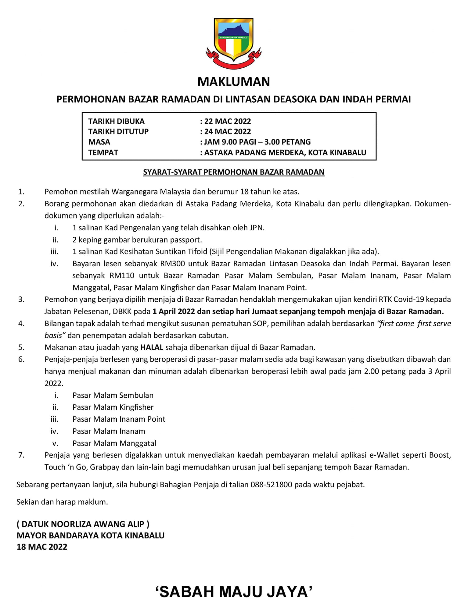 Untuk maklumat lanjut, sila hubungi :